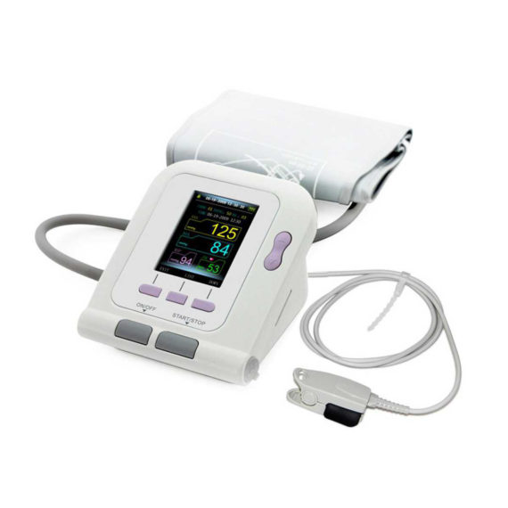 The BPM 08A with SpO₂ Probe and Adaptor is a professional desktop multi-parameter vital signs monitor designed for accurate and comprehensive patient monitoring. It combines blood pressure measurement, pulse rate monitoring, and optional oxygen saturation (SpO₂) tracking in one integrated device.